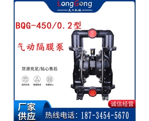 龍工機械公司山東氣動隔膜泵流動寬敞,通過性能好.允許通過大顆粒直徑達10mm。抽送泥漿、雜質時,對泵磨損甚微;揚程、流量可通過氣閥開度實現無級調節,該泵無旋轉部件,沒有軸封,隔膜泵|等抽送的介質與......